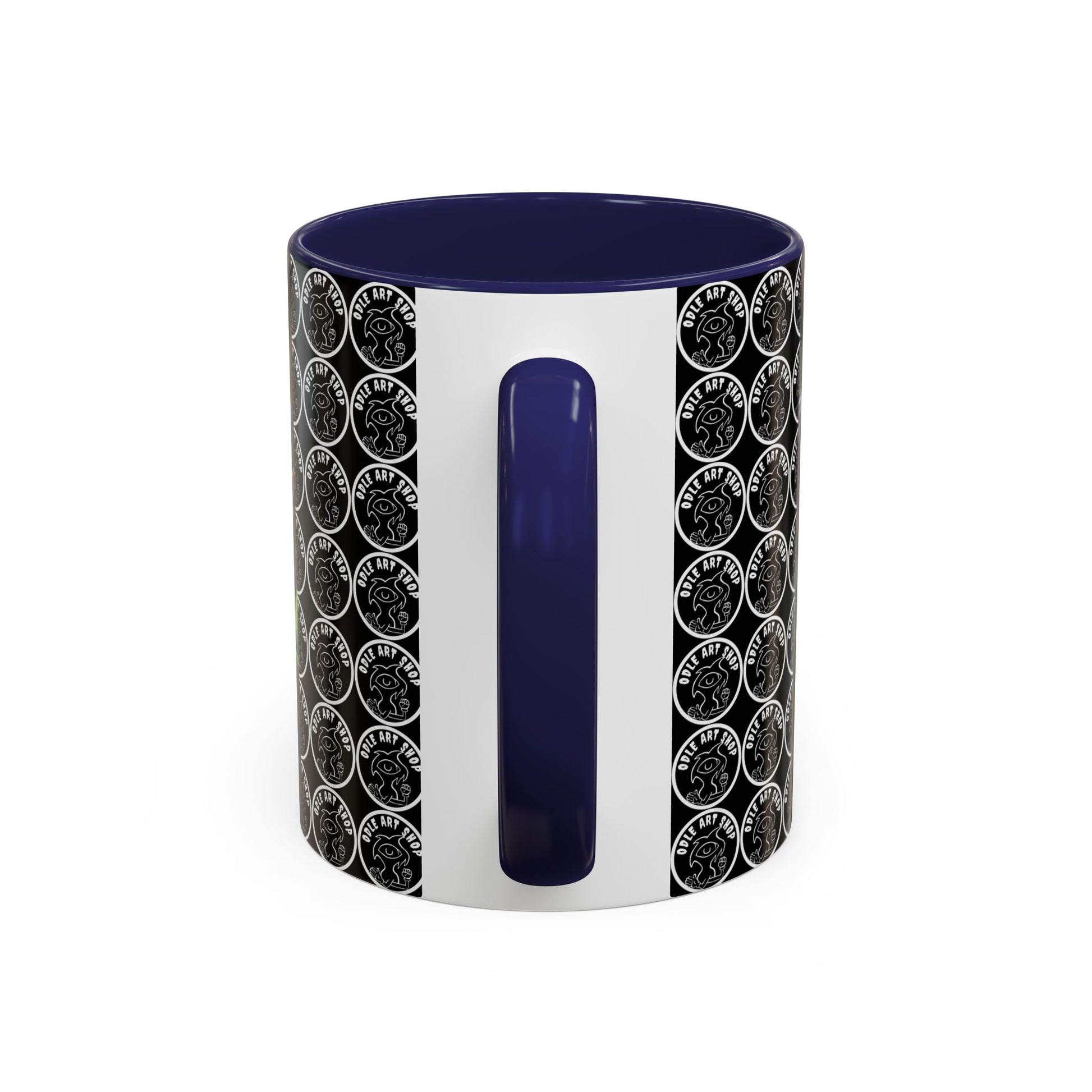 Smiley Mask Art Coffee Mug — Surreal Portrait Accent 11/15oz