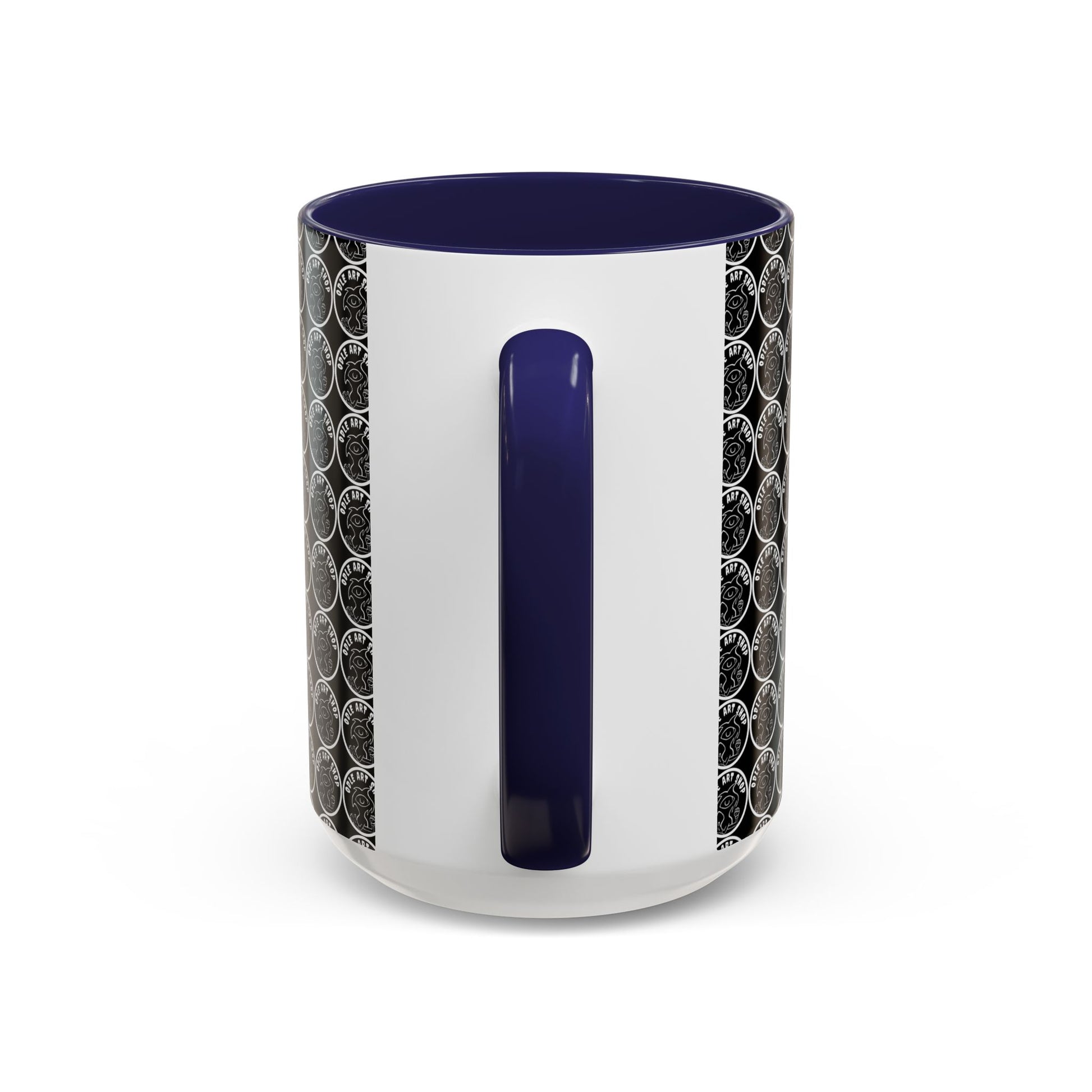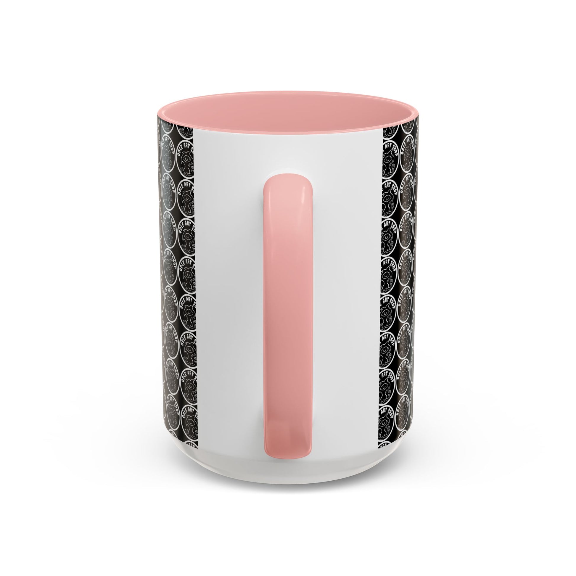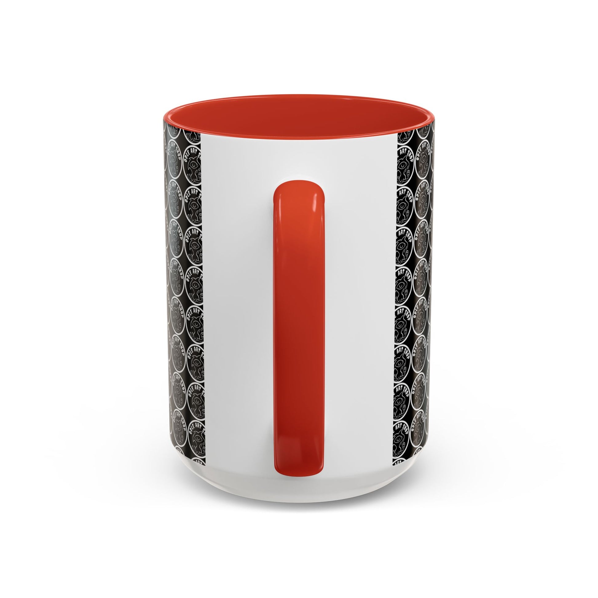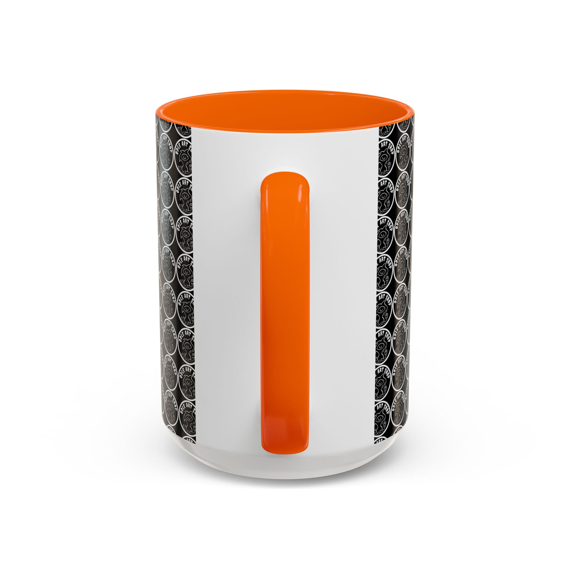 - White ceramic body with colored interior and C-shaped handle for comfortable grip